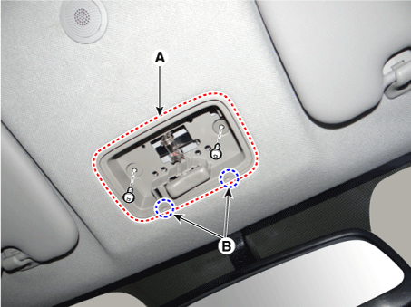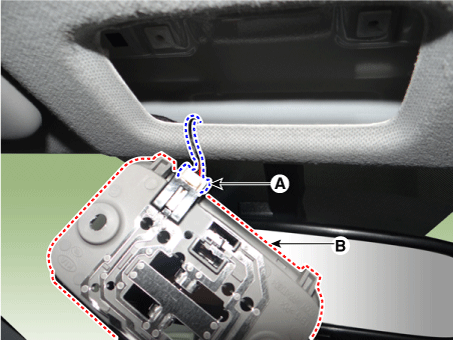 Снимите блок фонаря карты (B) после отсоединения разъема фонаря карты (A).