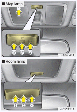 • (1) : нажмите лампы, чтобы включить передние габаритные огни включены и выкл.