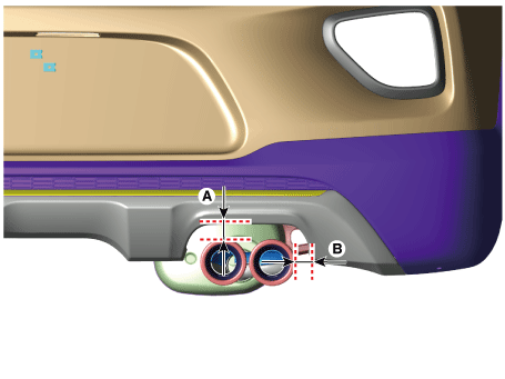 Запишите зазор (A, B) между выхлопной трубой и задним бампером.