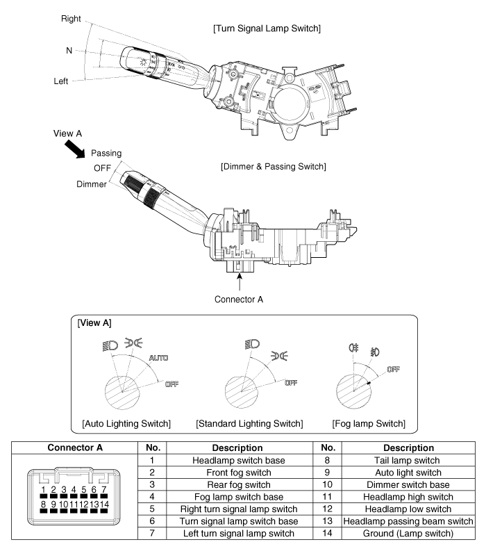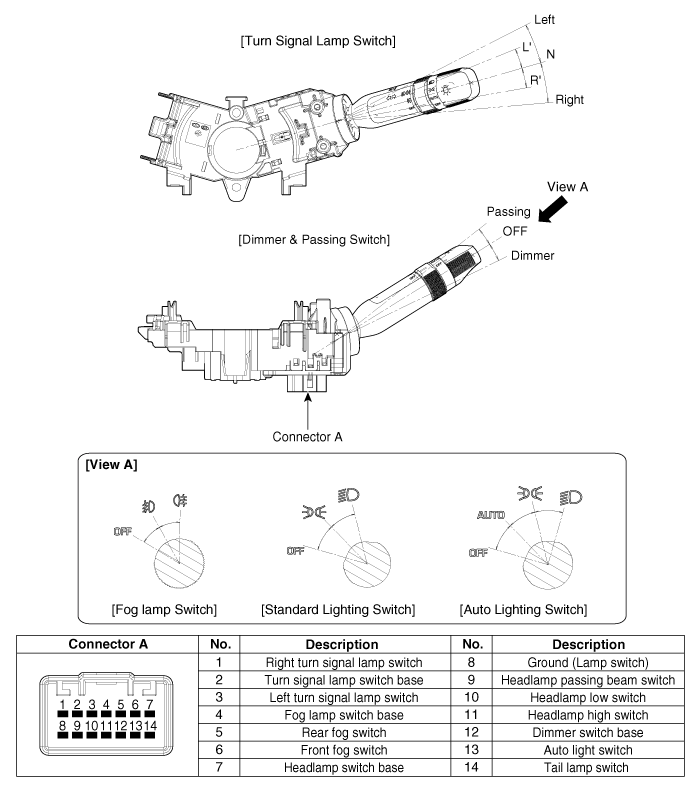 | [Переключатель указателей поворота / диммер и переключатель ближнего света] |