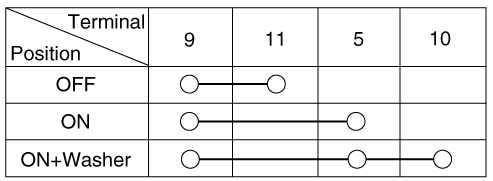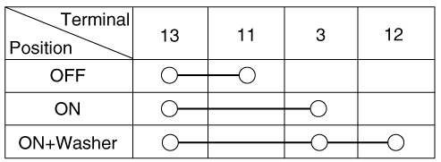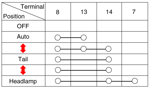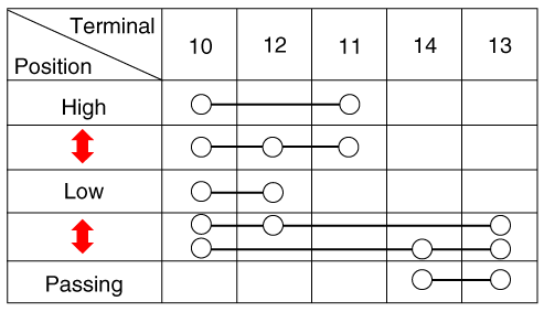 Проверьте целостность цепи между клеммами в каждом положении переключателя, как показано ниже.