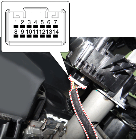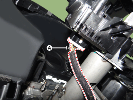 Отсоедините разъем переключателя указателей поворота/регулятора и переключателя ближнего света (А).