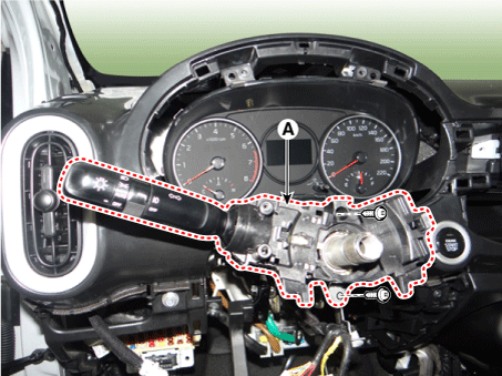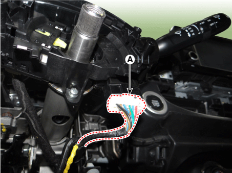 Отсоедините разъем переключателя стеклоочистителя/омывателя (А).