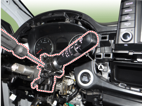 Снимите переключатель стеклоочистителя/выключатель омывателя (А), нажав на стопорный штифт.