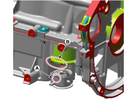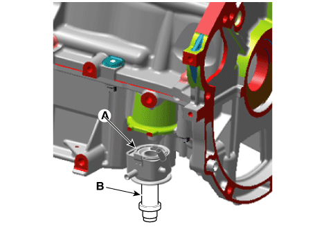 Нанесите тонкий слой моторного масла на уплотнительную поверхность масляного радиатора (A), а затем установите масляный радиатор с помощью крепежного болта (B).