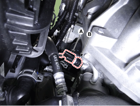 Снимите датчик давления масла (В) после отсоединения разъема (А).