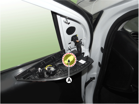 Отсоедините разъем высокочастотного динамика передней двери (А).