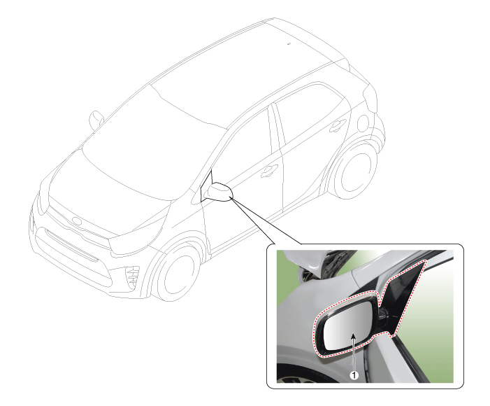 Отсоедините разъем наружного зеркала заднего вида (А) и ослабьте болты крепления.