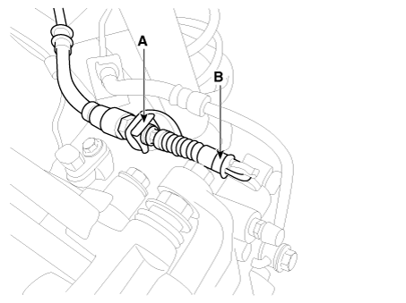Снимите трос стояночного тормоза (В), предварительно сняв зажим (А).