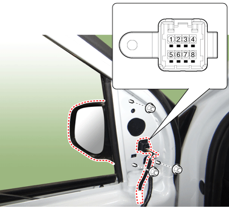 Отсоедините разъем наружного зеркала заднего вида с электроприводом от жгута проводов.