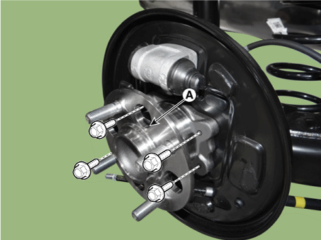 Ослабьте болты и снимите ступицу (А) с оси с торсионной балкой.