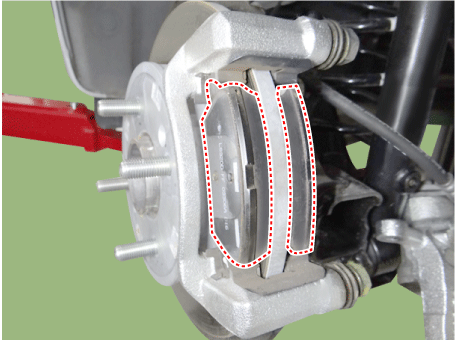 Проверьте износ колодок. Измерьте толщину колодки и замените ее, если она меньше указанного значения.