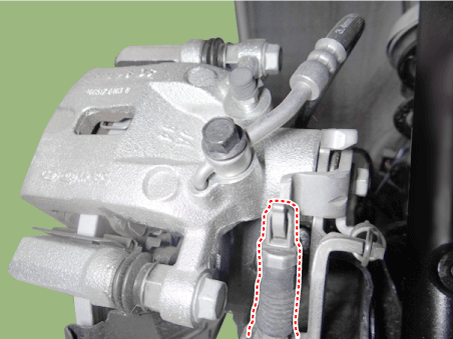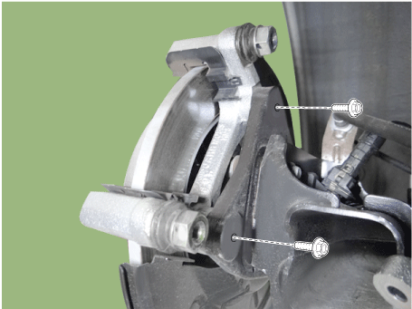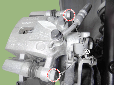 Ослабьте болты (А) и снимите корпус заднего суппорта.