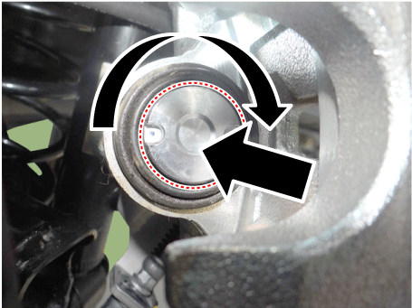 Поверните поршень суппорта и нажмите в направлении стрелки.