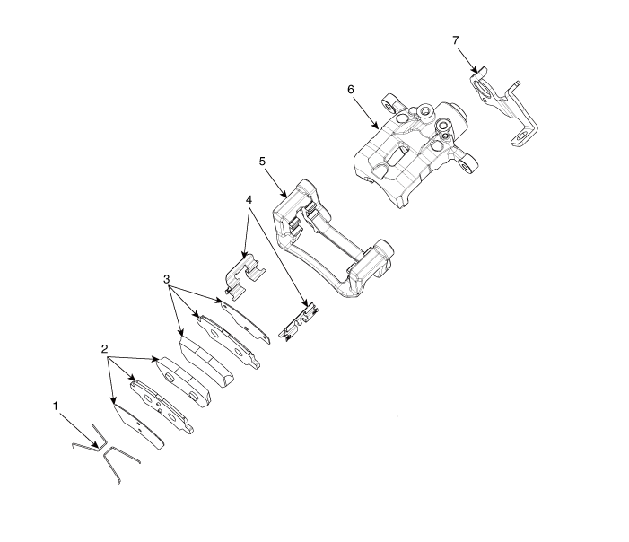 2. Тормозная колодка в сборе [ВНЕШНЯЯ] 3. Тормозная колодка в сборе [IN] 4. Внутренний вкладыш |