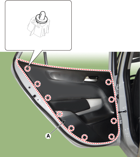 Снимите внутреннюю крышку треугольника задней двери (А) с помощью съемника.