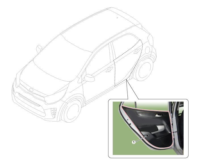 1. Обшивка задней двери в сборе 2. Кронштейн крепления обивки задней двери 3. Панель задней двери в сборе 4. Боковой уплотнитель кузова задней двери 5. Re ...