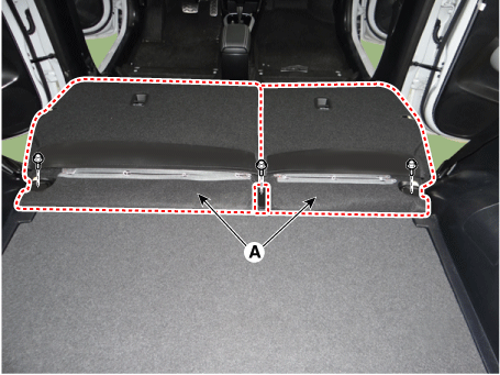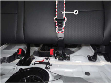 Снимите спинку заднего сиденья (А) после ослабления крепежного болта.