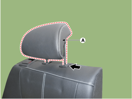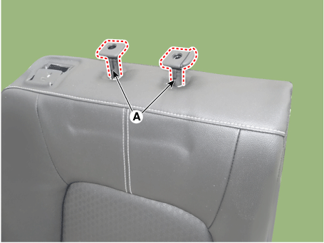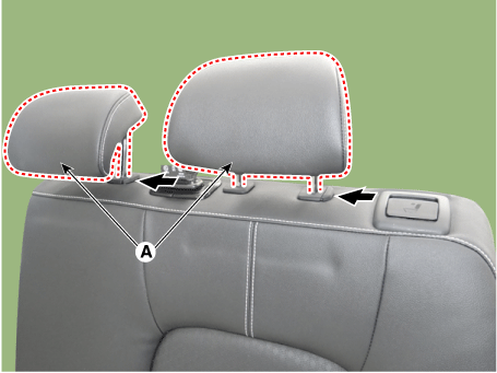 Нажмите на направляющие подголовника заднего сиденья (A), одновременно зажимая обе стороны нижней части направляющих, и снимите их.