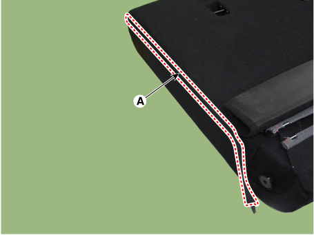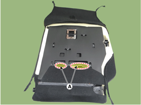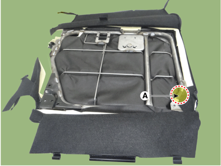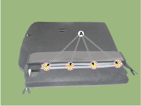 Отсоедините боковой крепежный крюк (А) обивки спинки заднего сиденья.