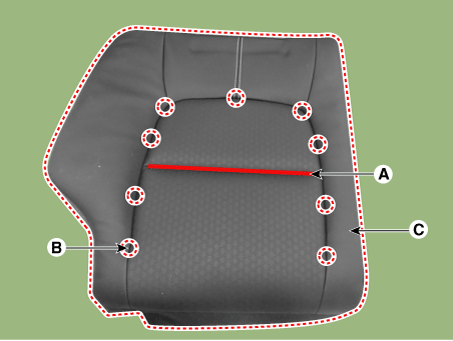 Снимите обивку спинки переднего сиденья (C), предварительно сняв липучку (A) и зажим (B).