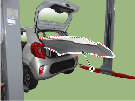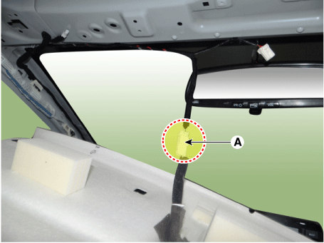 Снимите обивку крыши в сборе (А) с автомобиля через заднюю дверь.