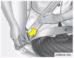 Ремень безопасности отстегивается нажатием кнопку разблокировки (А) на замке пряжка. Когда он отпущен, ремень должен автоматически втягиваться в ретрактор.