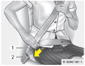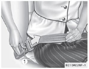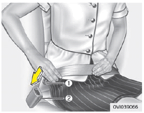 Чтобы пристегнуть ремень безопасности, вытяните его из ретрактор и вставьте металлический язычок (1) в пряжку (2). Будет слышимый «щелчок», когда вкладка фиксируется в пряжка.