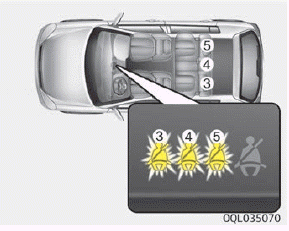 Но, если колени/плечо заднего пассажира ремень подсоединен и отсоединен два раза в течение 9 секунд после ремень пристегнут, соответствующее сиденье сигнальная лампа ремня не работает.