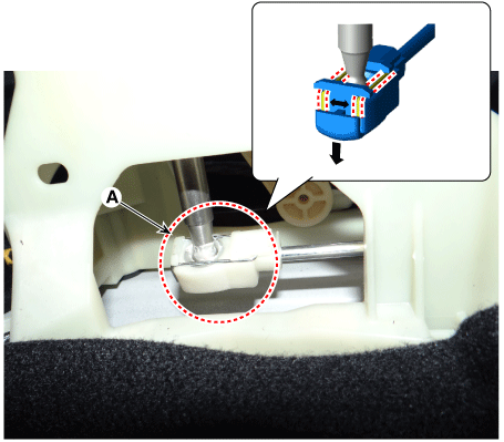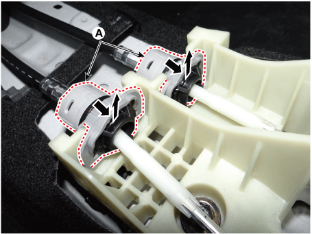 Снимите трос переключения передач (А) с рычага переключения передач.