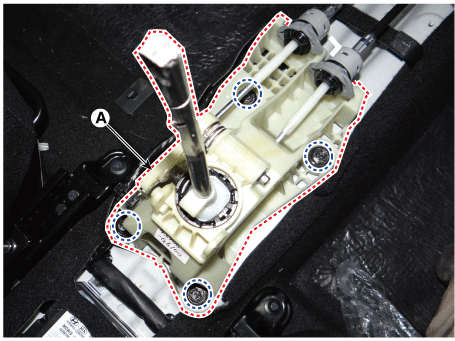 Снимите узел рычага переключения передач (А) после ослабления болтов.
