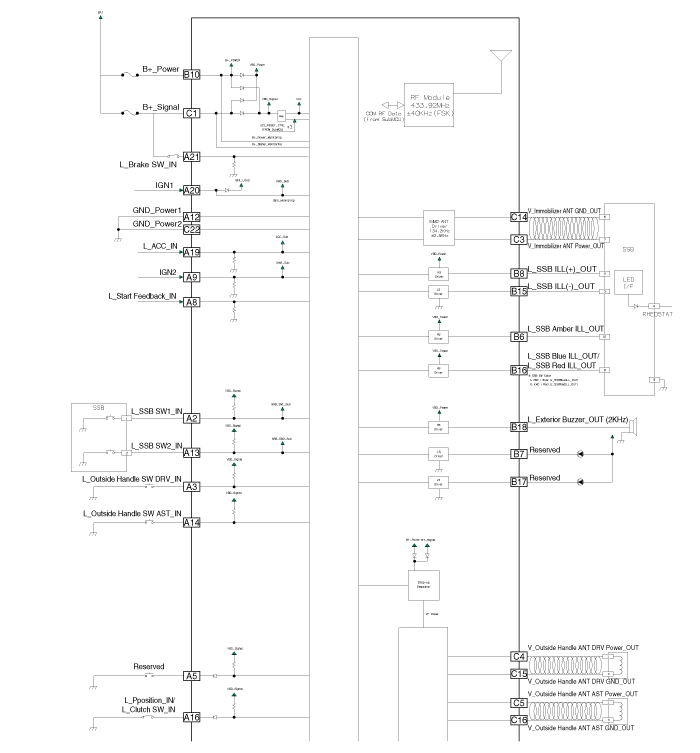 Подсоедините отрицательную (-) клемму аккумуляторной батареи и проверьте систему смарт-ключа.