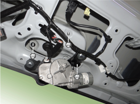 Снимите узел наружной ручки задней двери (А) после ослабления крепежных гаек.