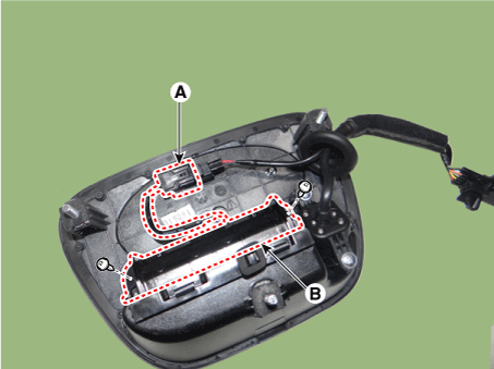Снимите переключатель открывания задней двери (В) после ослабления крепежных винтов.