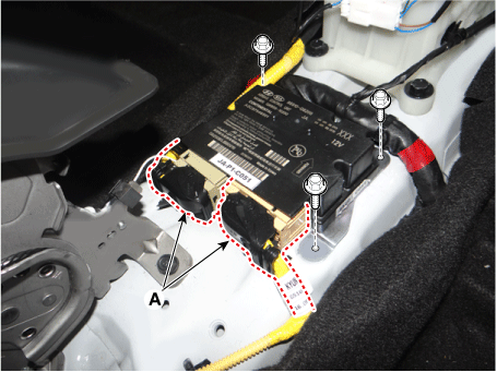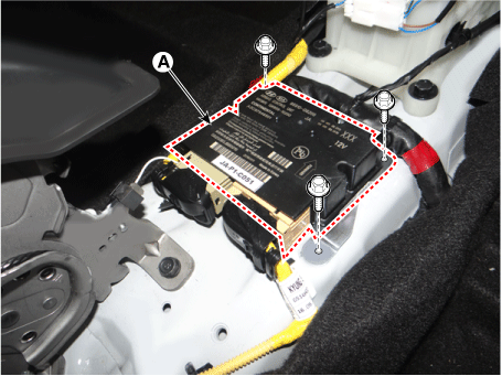 Отсоедините разъем (A) модуля управления дополнительной системой пассивной безопасности (SRSCM).