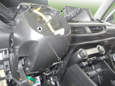 Отсоедините разъем многофункционального переключателя (А) и ослабьте винты (В).