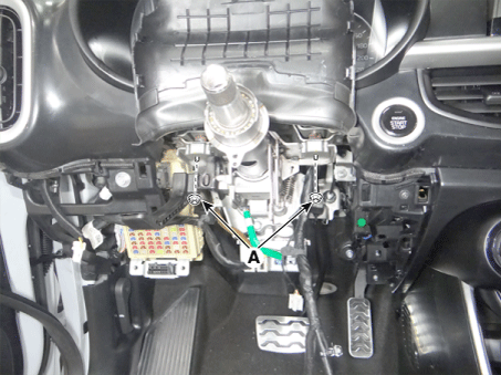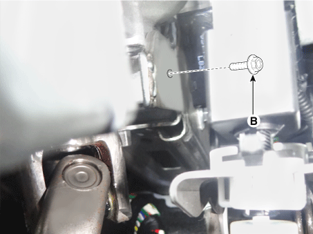 Ослабьте гайки (А) и болт (В), затем снимите рулевую колонку в сборе.