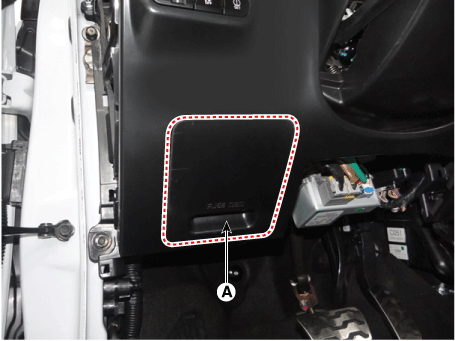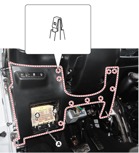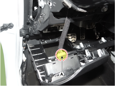 Снимите боковую крышку аварийной подушки [LH] (A) с помощью съемника.
