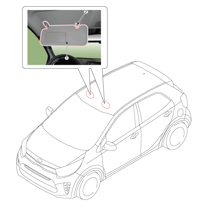 1. Солнцезащитный козырек в сборе 2. Обшивка потолка в сборе 3. Ручка помощи при подъеме на крышу в сборе 4. Ро ...