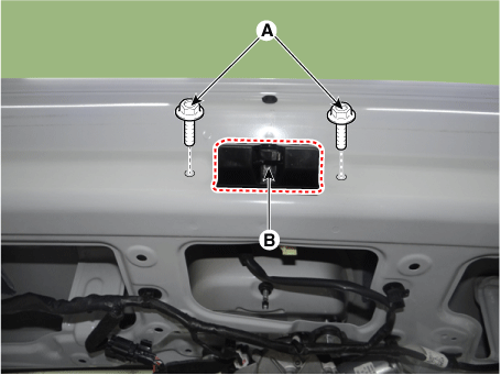 Снимите замок задней двери (В) после ослабления крепежных болтов (А).