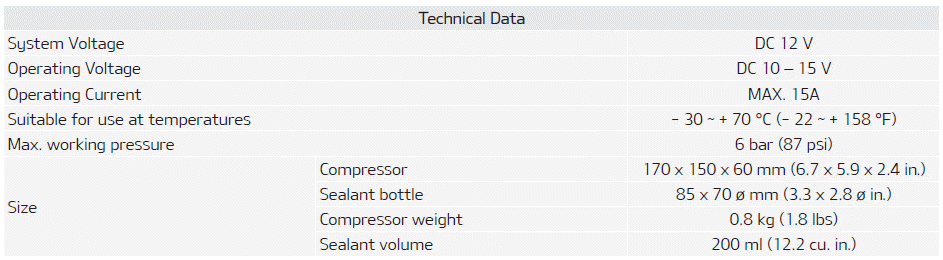 Kia Picanto: если у вас спустила шина (с комплектом для перемещения шин) (тип A) / технические данные