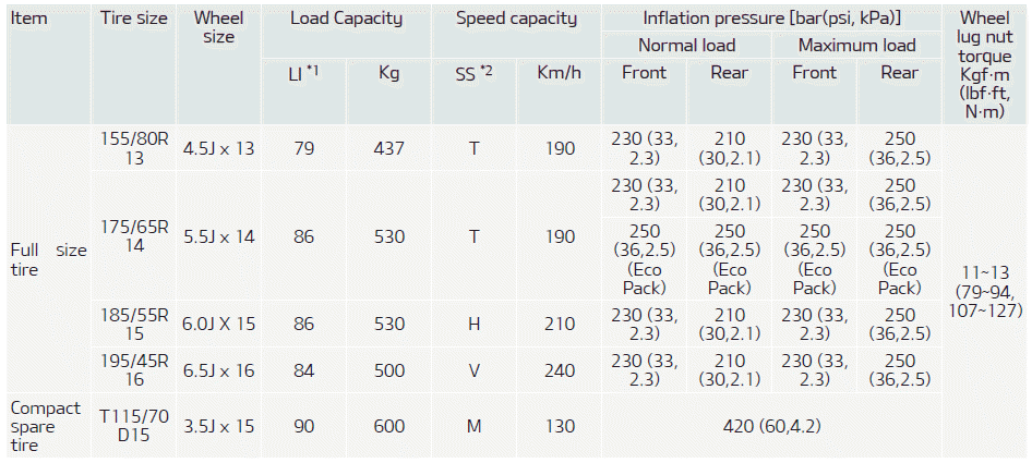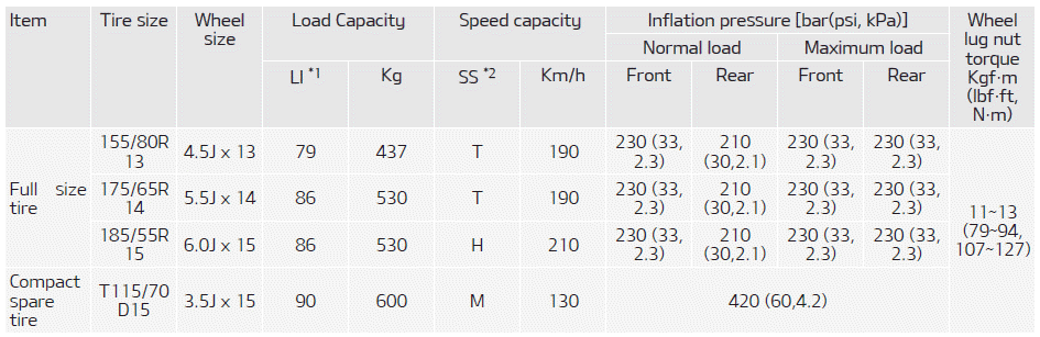 Kia Picanto: Технические характеристики и информация для потребителей / Шины и диски