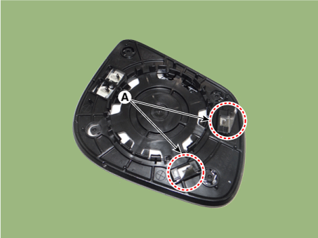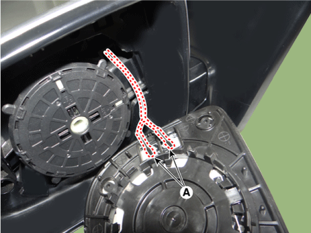 Снимите кожух наружного зеркала заднего вида (А), отсоединив монтажные зажимы.