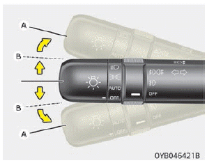 Чтобы сигнализировать об изменении полосы движения, переместите поворот сигнальный рычаг слегка и удерживайте его в этом положении (Б). Рычаг вернется в выключенное положение положение при отпускании.