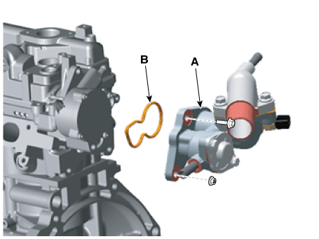 Снимите блок управления температурой воды (А) с прокладкой (В).