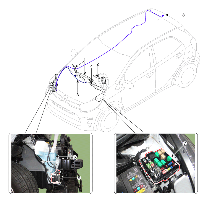 6. Бачок омывателя 7. Реле стеклоочистителя/омывателя. 8. Шланг и форсунка заднего омывателя |