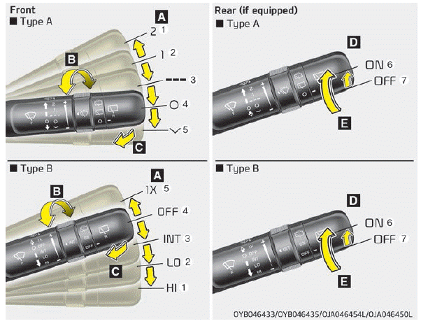 Kia Picanto: Характеристики вашего автомобиля / Стеклоочистители и омыватели