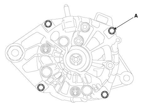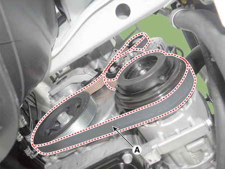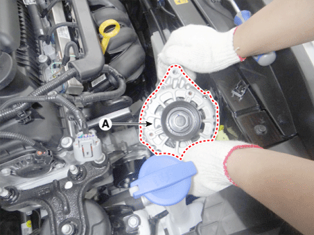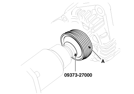 Снимите шкив OAD (обгонная муфта генератора) (A), используя специальный инструмент.
