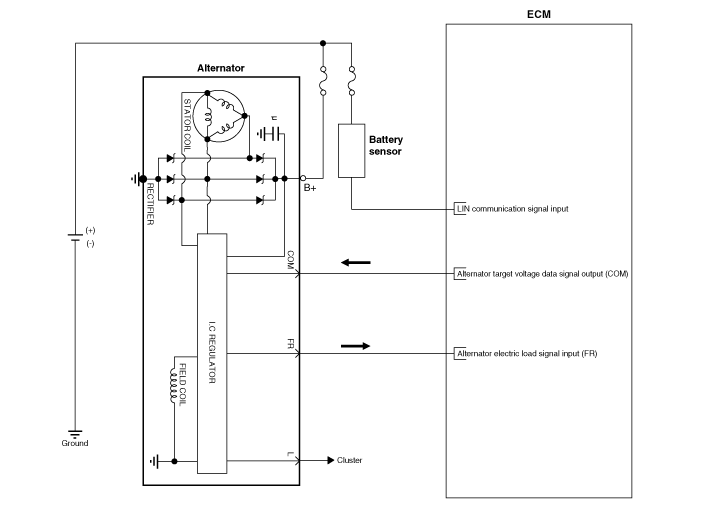 Генератор регулируется системой определения напряжения аккумуляторной батареи.