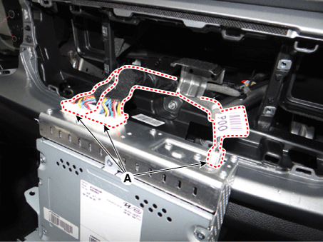 Снимите головное аудиоустройство, предварительно отсоединив разъемы и антенну. кабель (А).
